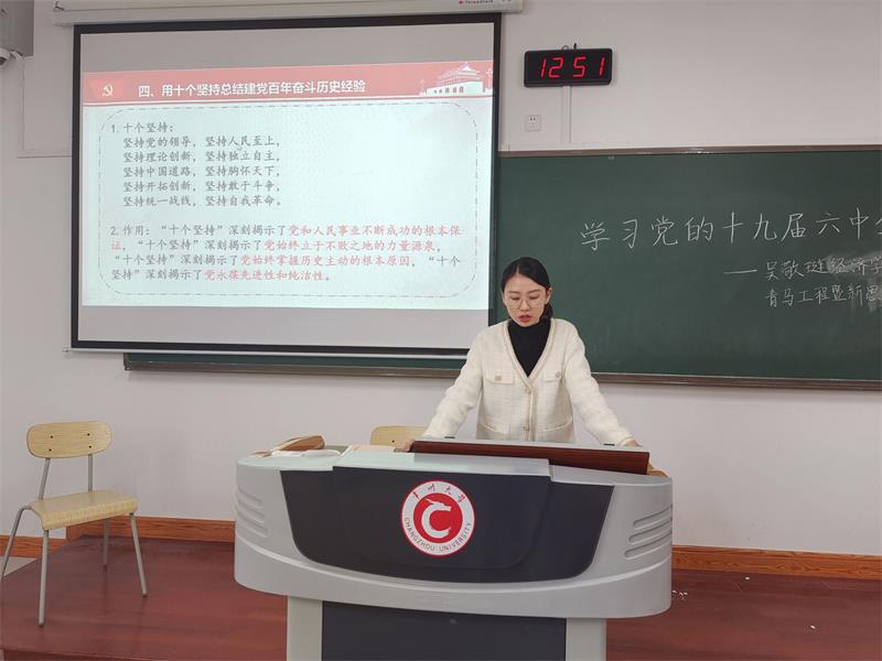 为深入学习党的十九届六中全会精神,坚定青年学生理想信念,ACG盒子 于12月7日下午在立德楼X102开展了以“学习党的十九届六中全会精神”为主题的新思想公开课。活动由学院团副董慧琳主持,学院团委书记石晨迪主讲,大一大二全体班委参与。