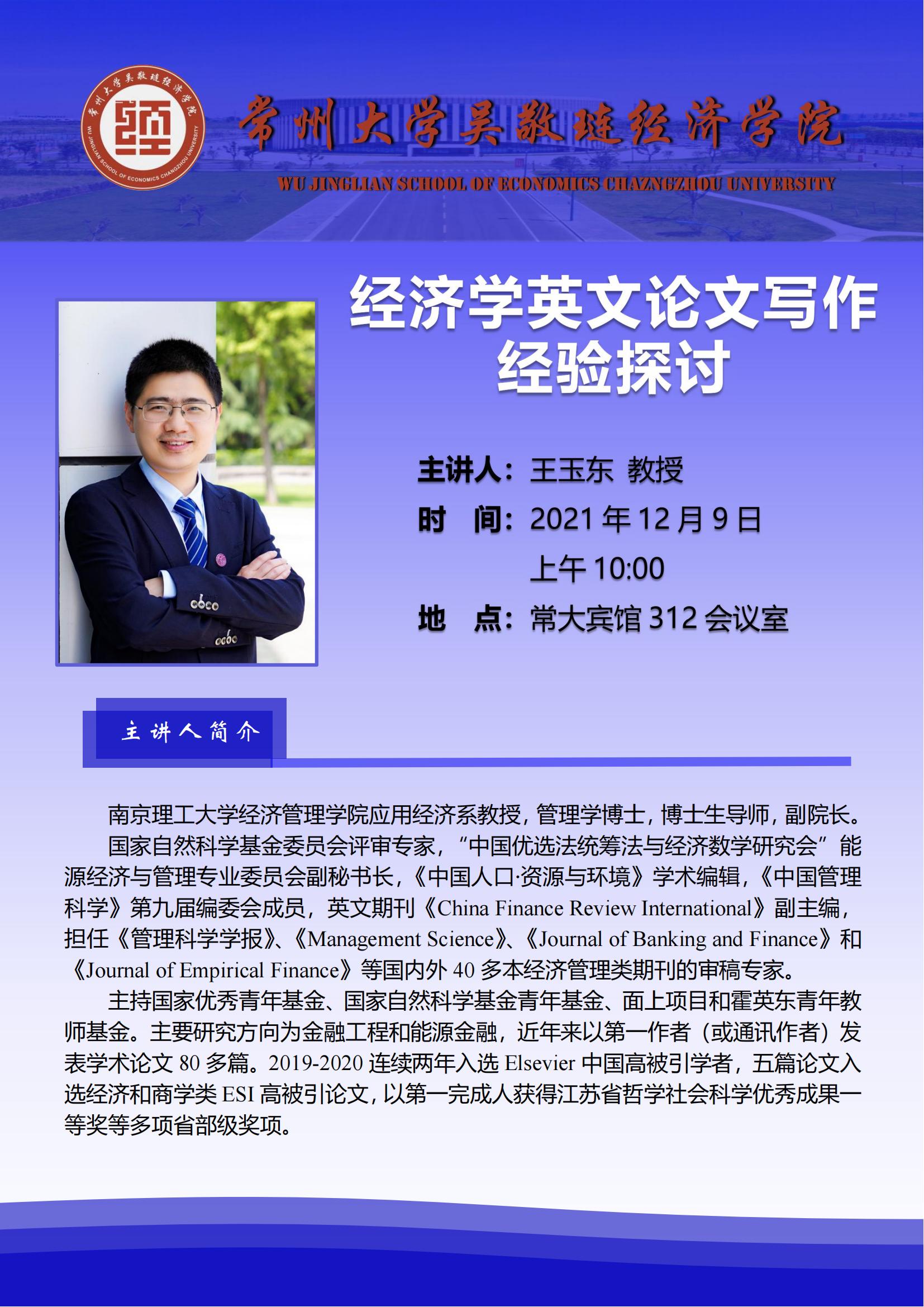 学术讲座:经济学英文论文写作经验探讨