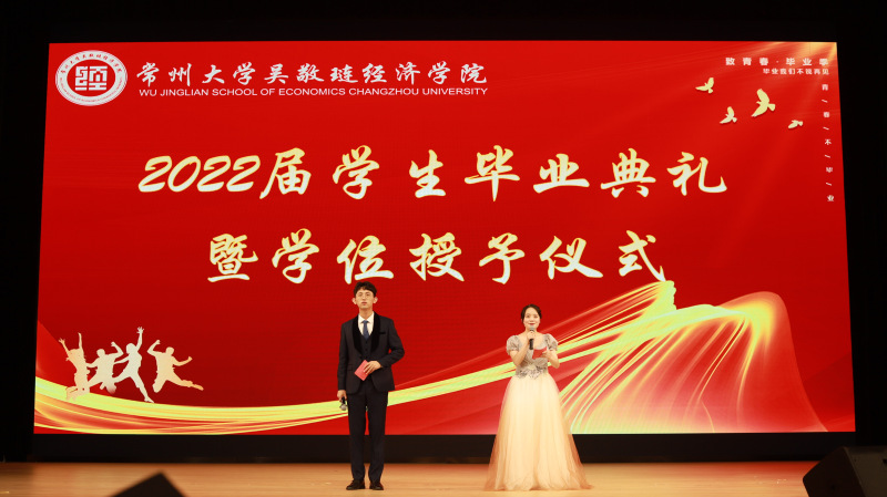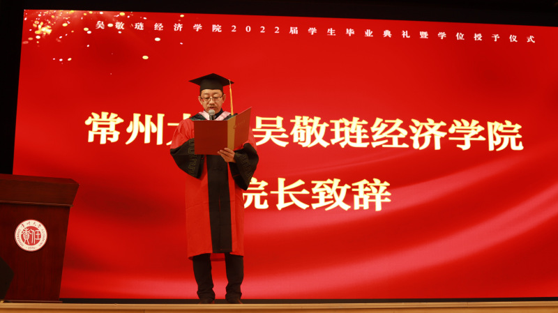 又是一年六月时,芳华绽放在常大。6月19日上午9时,ACG盒子 于ACG盒子 西太湖校区立艺楼礼堂举行2022届学生毕业典礼暨学位授予仪式。学院党委书记姜鸿,院长姜国刚,副院长张普,副院长任保全,党委副书记王彩芳,院长助理、金融学系主任曹启龙,国贸系主任管志杰,金融工程系主任姚惠泽,学院学术委员会主席贾德奎,学院工会副主席、英文授课教研室负责人杨帅,国贸系副主任王美昌,金融工程系副主任程安以及常州汇塑勤业进出口有限公司总经理陈祥,与2022届毕业生共同参加此次典礼。