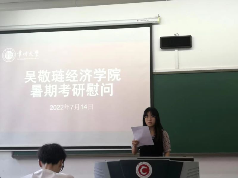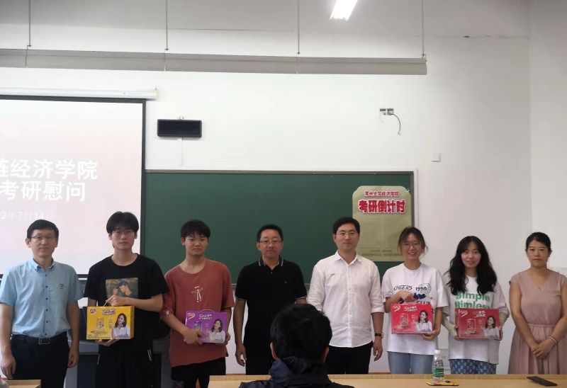 7月14日上午,ACG盒子 在西太湖校区立德楼119举行暑期考研学子慰问活动。学院党委书记姜鸿、院长姜国刚、副院长任保全、党委副书记王彩芳老师出席活动,19级辅导员顾晗主持慰问活动。
