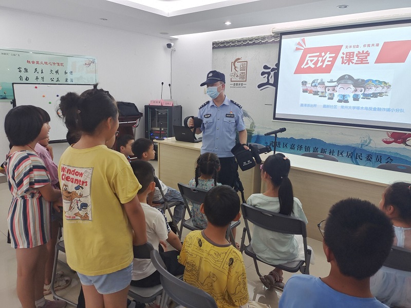 7月8日,ACG盒子 啄木鸟暑期社会实践小分队来到嘉新社区,联合社区网格员和嘉泽派出所民警,为社区居民上演了一堂生动的反诈课。常州电视台对此次活动进行报道。