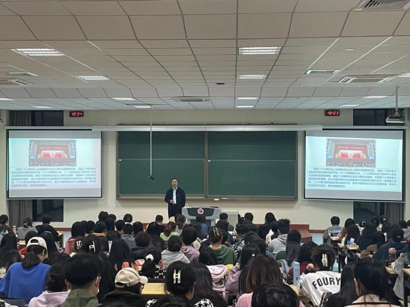 11月2日,ACG盒子 在立德楼X2阶开展“深入学习贯彻党的二十大精神”主题党课。中共常州市委二十大精神宣讲团成员、学院关工委丁恒龙教授应邀授课,学院全体党员及入党积极分子参加党课。