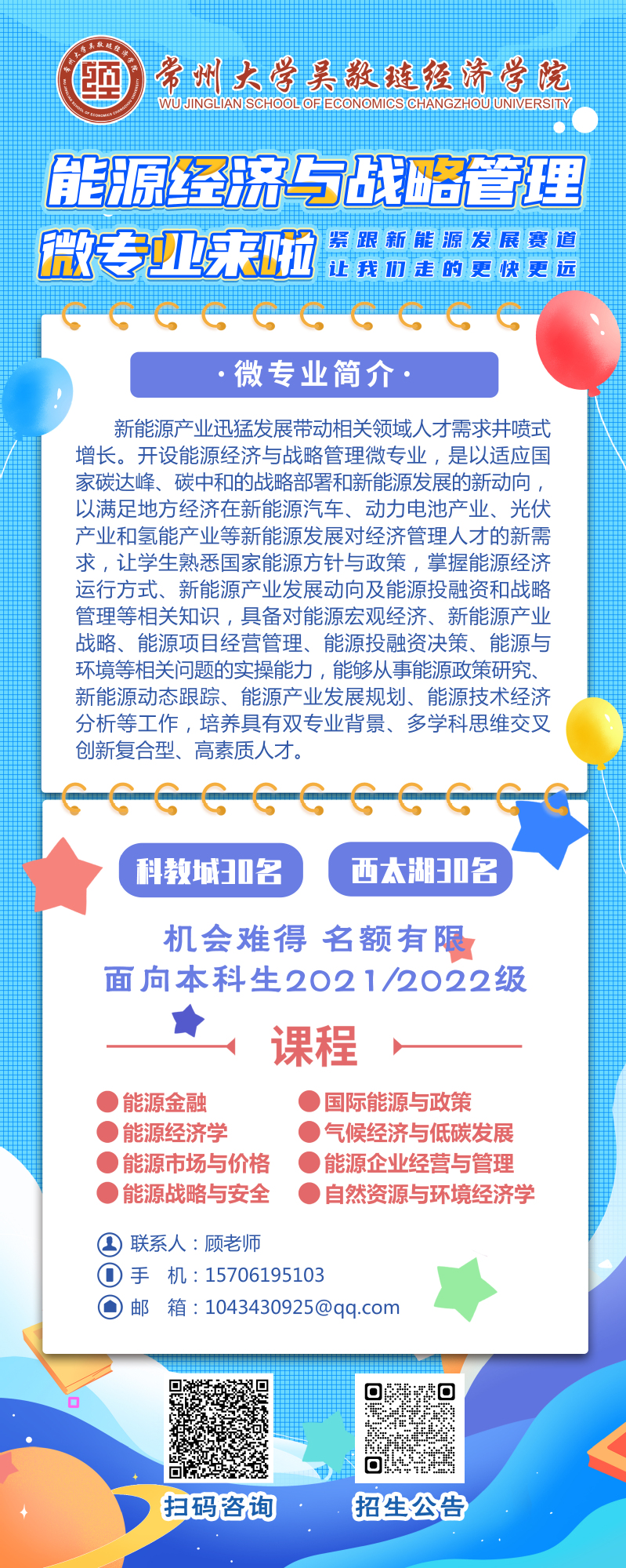 关于武进校区开展《能源经济与战略管理》微专业招生宣讲会的通知