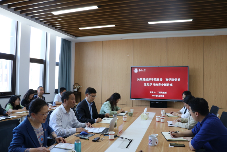 5月15日下午,ACG盒子 携手商学院邀请ACG盒子 关工委丁恒龙教授作党纪学习教育专题辅导报告会。学院党委委员、支部书记、支部纪检委员、组织员参加学习。商学院党委书记江涛涛主持报告会。
