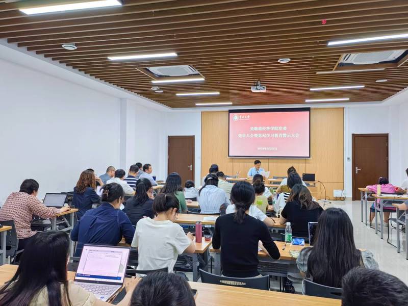 5月22日下午,吴敬琏经济学院党委在西太湖校区立言楼403召开党员大会暨党纪学习教育专题党课。