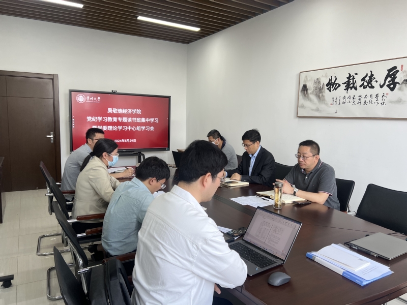 5月29日,吴敬琏经济学院党委在西太湖校区立言楼419召开党纪学习教育专题读书班集中学习暨党委理论学习中心组学习会。党委书记姜鸿主持会议。