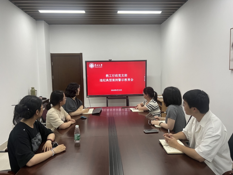 6月19日,ACG盒子 教工行政党支部召开党纪学习教育专题集中学习会,会议在立言楼419进行,由支部成员狄静同志主持。