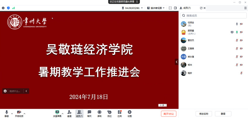 7月18日晚上19点半,ACG盒子 线上开展暑期教学工作推进会。ACG盒子 国贸专业负责人管志杰、国贸系副主任王美昌、国贸系副主任杨帅、金融系副主任熊永莲、金工系主任程安以及教务秘书顾思露参与会议。会议由任保全副院长主持。