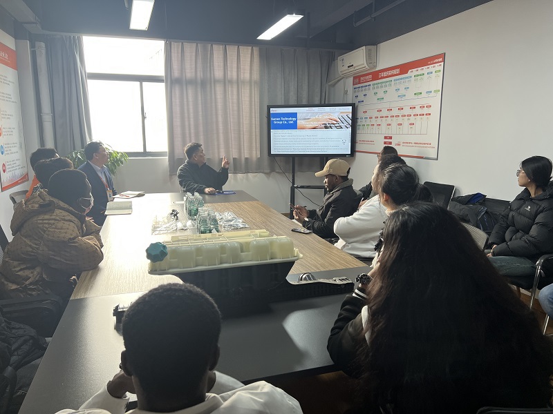 12月6日下午,学院组织十余名中外学生走访塑盟科技集团有限公司。塑盟科技集团有限公司总经理龚东卫、外贸总监陈时彦、运营总监陈江涛参加交流。