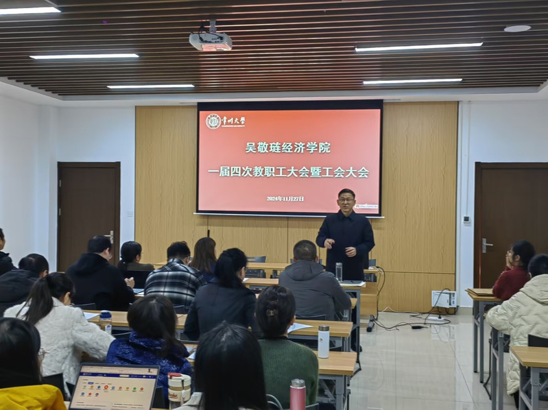 工会副主席杨帅老师作分工会年度报告。他首先总结了过去一年经济学院老师参与学院层面与学校层面工会活动的情况与取得的成绩;接下来他对2024年工会经费使用情况进行汇报;最后,杨帅老师对上一年度老师提交提案的办理情况一一进行通报说明,并发起征集新一年度提案。