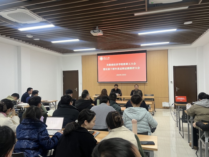 1月8日,ACG盒子 在立言楼403召开教职工大会暨处级干部年度述职述廉测评大会。学院全体教职工参会,会议由党委书记姜鸿主持。