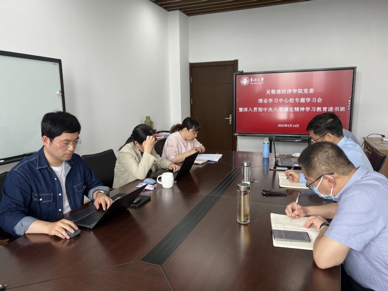 5月14日上午,学院党委在立言楼419会议室召开理论学习中心组学习会暨深入贯彻中央八项规定精神学习教育读书班。会议由党委书记姜鸿主持。