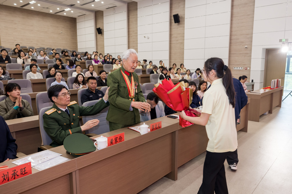 理论教育是传承红色基因的思想基石。活动中,常州市军休保障服务中心“老兵有故事”红色宣讲团成员刘力宏深情讲述了军休干部张克义的动人故事。从战火纷飞的革命年代到和平建设的岁月,张克义老人的事迹如同一部生动的教科书,让在场学生深刻感悟到革命先辈坚定的理想信念与无私的奉献精神。这不仅是一堂生动的党史课,更是老兵精神向青年一代的深情传递。活动现场,我院学生代表怀着崇高敬意向张克义老前辈献上鲜花,鲜花与掌声的簇拥,正是对跨越时光信仰传承的最好致敬。