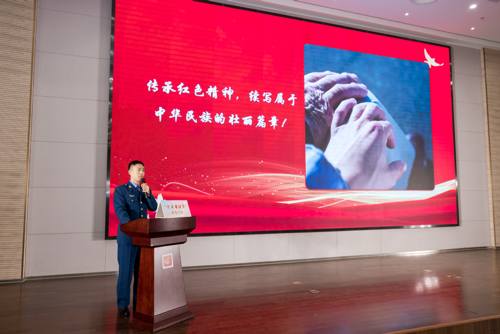 实践是青春向党最响亮的告白。活动以我院学生激昂的合唱《有我》拉开序幕,“请党放心,强国有我”的誓言唱出了新时代青年的使命担当。我院学生代表铿锵有力的红色朗诵《英雄耀龙城丹心照千秋》,将革命英雄的事迹与新时代青年的责任紧密相连,彰显了革命精神赋予新一代的奋进力量。这既是我院学子对红色文化的主动演绎,也标志着“老兵有故事”宣讲团精神在学生“红色宣讲员”队伍中得到了新的传承。