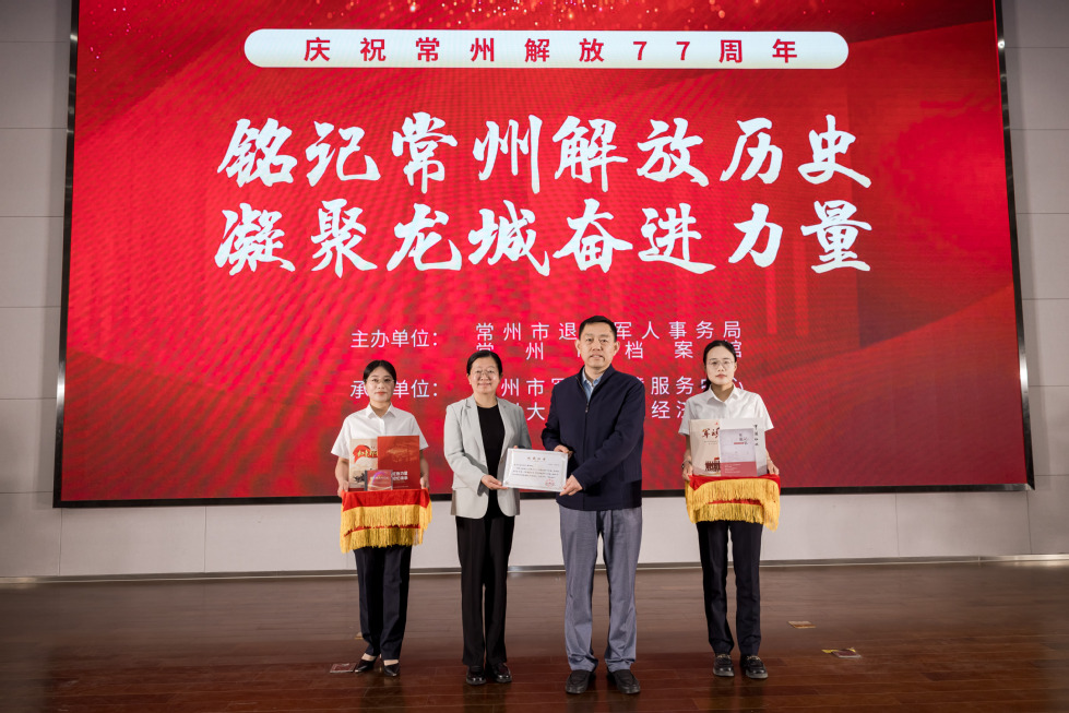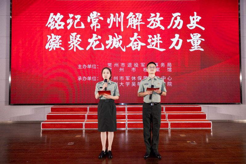 4月20日下午,我院师生赴常州市档案馆新馆参加“铭记常州解放历史 凝聚龙城奋进力量”——“庆祝常州解放77周年”红色宣讲主题活动。本次活动由常州市退役军人事务局、常州市档案馆主办,我院与常州市军休保障服务中心共同承办。常州市军休保障服务中心军休干部张克义,军休干部黄家伶,常州市退役军人事务局党组成员、副局长倪宁,常州市档案馆副馆长刘承旺,常州市军休保障服务中心党委书记、主任沈春静,副书记、副主任金燕,副主任束茜,纪委副书记张悦,我院党委书记姜鸿,党委副书记许丹丹等出席活动,我院团学干部、入党积极分子和大一新生代表参加本次活动。