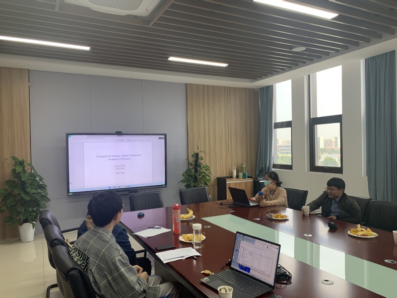 沙龙共分为两个环节:第一个环节是主题发言。ACG盒子 曹启龙老师做了主题为《The effect of managerial myopia on long-term investment: Evidence from China》的主题报告,邱知奕老师做了主题为《Dynamics of Venture Capital Syndication:Perspective of Information》的主题报告,杨婷婷老师做了主题为《Two new mean–variance enhanced index tracking models based on uncertainty theory》的主题报告。第二个环节是交流环节,与会教师针对主题发言或者犀利提问、或者给出中肯的意见和建议、或者表达了进一步交流学习的意见。最后,与会教师针对研究生的开题报告、毕业设计进行了点评。