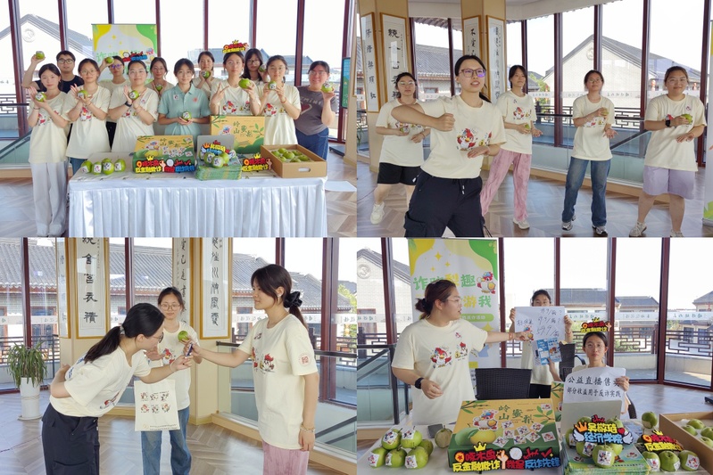 远“梨”诈骗,直播助农。如何将反诈宣传教育和乡村振兴紧密结合是团队一直在思考的问题。在团队的精心筹备下,7月4日,一场巧妙融入反诈元素的直播售梨活动在梨花语景区内部的八角楼上顺利开播。团队帮助村民售卖当地的特产酥脆梨,梨子的内包装和外包装上都精心印制了团队自己设计的反诈萌宠形象。直播过程中,团队编演了以“梨”为关键词的反诈小品,“梨”财大师、“梨”货、“梨”谱、“梨”想经济等一系列词语引人深思。主播们埋伏笔、抖包袱,为观众揭秘了常见的诈骗陷阱。园区对这场直播赞不绝口,与团队达成合作意向,邀请团队常态化采用公益直播的方式为他们打开销路,并承诺将部分受益用于支持团队公益反诈实践。