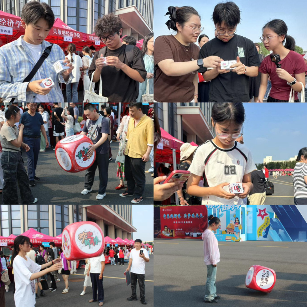 迎新现场,班主任助理用心工作,以高效周到的安排让学生暖心、家长安心。志愿者团队整装待发,以灿烂的笑容和热情贴心的服务,为新生提供引导、答疑、行李搬运等一站式帮助。别出心裁的打卡点承载着学院对新同学的热烈欢迎与美好祝愿,新生们纷纷驻足留影,定格青春初见的美好瞬间。学院精心筹备“三重好礼”,让学子初入校园便感受到人文温情与专业底蕴的双重滋养。“30秒魔方挑战”与“巨型骰子博弈”两大趣味活动吸引新生踊跃参与,留下一段段欢笑与挑战交织的独家记忆。