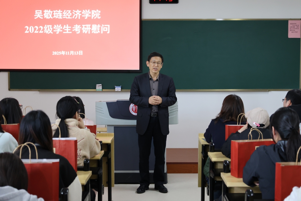 为切实关注考研学子的备考状况,传递学院的关怀与支持,11月13日下午,ACG盒子 于立功楼125举办了2022级学生考研慰问活动。学院党委书记姜鸿、党委副书记许丹丹、副院长任保全、国贸系主任管志杰、金融系主任程安出席活动。本次活动由学院2022级辅导员徐茜主持。