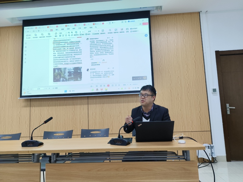 2023年11月15日下午,ACG盒子 教学指导委员会和学院工会联合举办教师工作坊系列讲座(第九期),在立言楼403会议室召开,讲座主题为《如何讲好一堂课》。ACG盒子 教师吴晓忠主讲,副院长任保全主持,学院全体教师参加讲座。