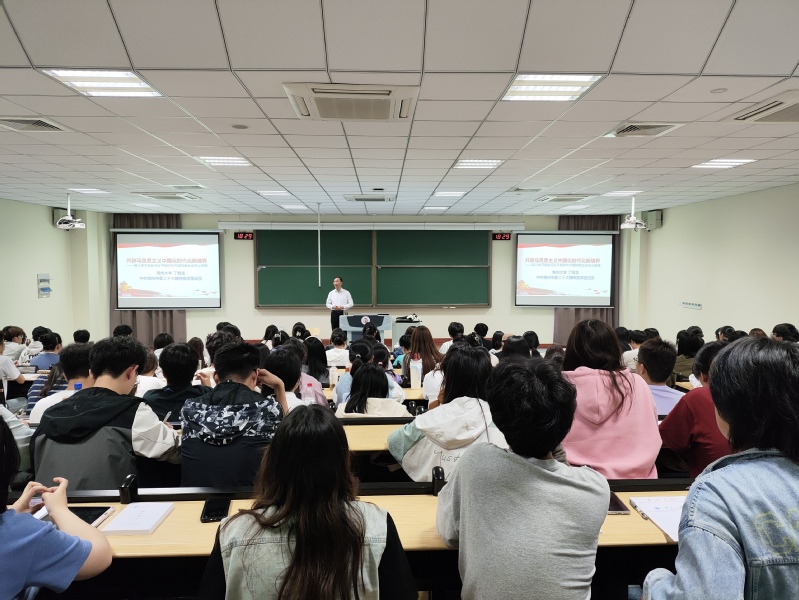 丁恒龙教授以“开辟马克思主义中国化时代化新境界”为题,围绕马克思主义中国化时代化的重要意义、习近平新时代中国特色社会主义思想的核心要义、推进马克思主义中国化时代化的根本途径、习近平新时代中国特色社会主义思想的世界观和方法论四个方面进行重点阐述。带领学子从理论出发,指出推进马克思主义中国化时代化的新境界,需要我们坚持问题导向,用系统的观念去考虑问题,从理论和实践层面阐述了马克思主义时代化中国化的重要意义。他讲到,习近平新时代中国特色社会主义思想是中华文化和中国精神的时代精华,开辟了马克思主义中国化时代化新境界。并结合近期国际,国内热点事件,同主题教育相联系,进行深入浅出的解读,为大家上了一趟生动精彩的专题党课。(文/胡星 摄/杨馥瑜 审核/王彩芳 编辑/徐茜)